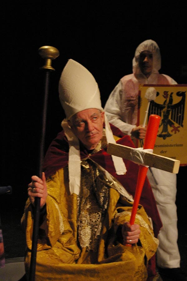 Deze voorstelling werd tijdens het Avantgarde Festival in Amsterdam door de pers geprezen als redding van het Europese theater. - Het liefdesconcilie, van Oskar Panizza
