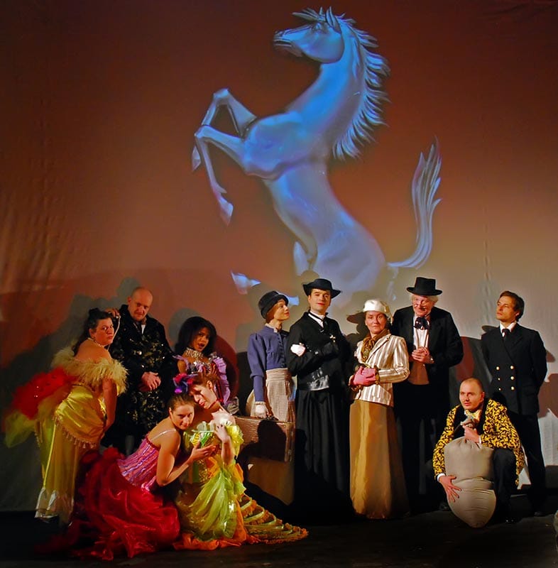 Regie en decor: HP Trauschke - Symposium - Internationaal godenontmoeting, van Ludo Vici, Claus Zey en HP Trauschke, Praterinsel München bij de eeuwwisseling.