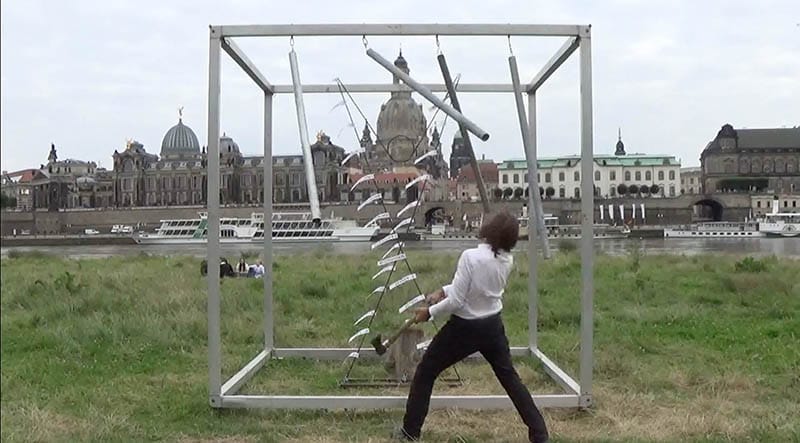 Regie en decor: HP Trauschke - Ei! Cel - Het ware verhaal van Michael Braunhieber - naar Gregor Bataille. Bezetting Kunstbahnhof Klotzsche voor de Sächsischen Kunstverein.